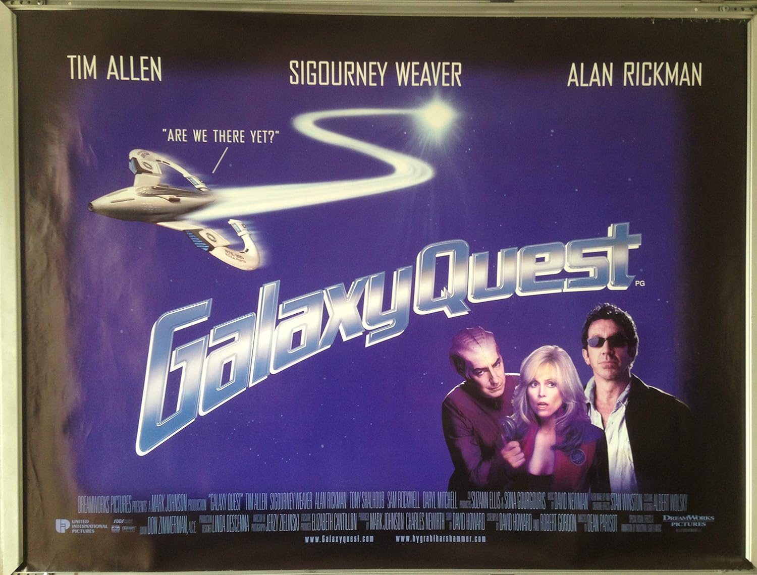 Film Poster for Galaxy Quest featuring the three leads l to r Alan Rickman, Sigourney Weaver and Tim Allen - image sourced from amazon.com
