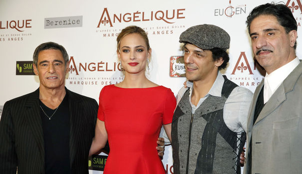 Les acteurs Gérard Lanvin, Nora Arnezeder, Tomer Sisley et Simon Abkarian lors de l'avant-première du film "Angélique" d'Ariel Zeitoun, le 16 décembre 2013 à Paris (From l to r Actors Gérard Lanvin, Nora Arnezeder, Tomer Sisley and Simon Abkarian line up before the première showing of "Angélique" in Paris on 16th December 2013 directed by Ariel Zeitoun) - Picture afp.com/Patrick Kovarik