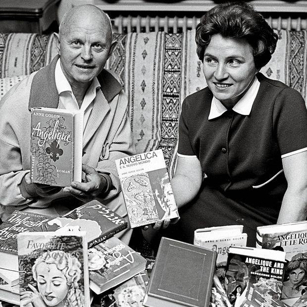 In Versailles Anne started to write her first volume of Angélique whilst Serge researched the period and provided invaluable advice for Joffrey's vast geological and scientific knowledge. In 1956 Angélique was published in Germany to great acclaim and solely under the name of Anne Golon. Finally in 1957 the book was published in France giving joint publication recognition to Anne and Serge Golon despite the insistence of the publisher who deemed that books 'of this sort' would carry greater gravitas if believed to have been written by a man. A year later Angélique would appear in the United States and Great Britain with the author disguised as the ambiguous 'Sergeanne Golon'. On the strength of the success of the books, in 1964 the first Angélique film was commissioned. This film trivialised the storyline and in particular the role of the female gender, stereotyping Angélique as an empty-headed opportunist. Despite the negativity and mockery heaped on the films, by 1985 Angélique had appeared in 13 full-length novels and her popularity was not to be seen waning either internationally or domestically. When interviewed about the books, Serge is known to have stated to journalists - "Ask my wife, it is she who is the author of 'Angélique.'"
