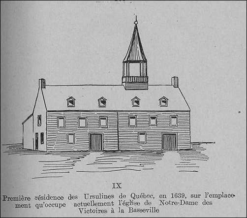 This specific example is recorded as the 'First Ursuline residence in Quebec, 1639' on which now stands the Church of Notre-Dame des Victoires à la Basseville.