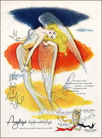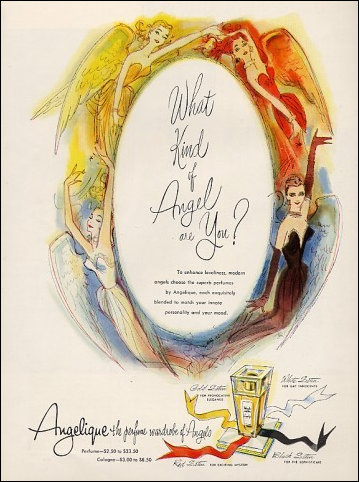Promotional material this time asking 'What kind of Angel are you?' and running the strapline 'The perfume wardrobe of Angels' circa 1955