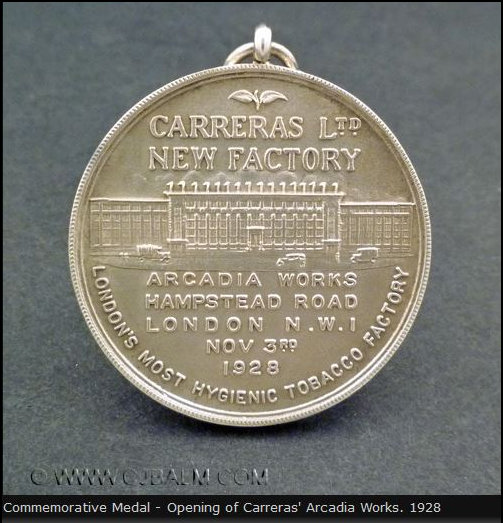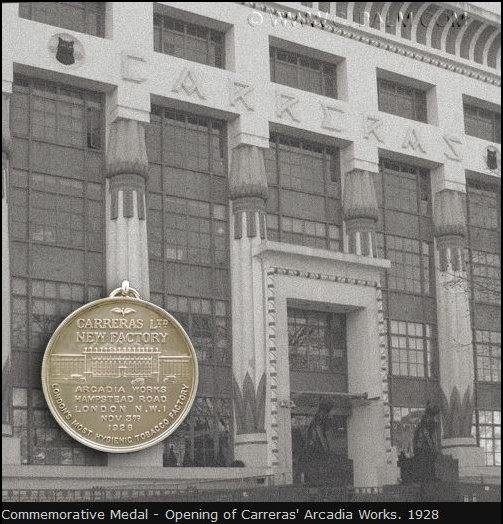 The building was officially opened with great fanfare on 3 November 1928. The pavements were covered in sand, opera singers from a London staging of Verdi's opera Aida and actors in Ancient Egypt-style costumes performed, while chariot races were held on the street. The company struck a commemorative medal in celebration for all 3,000 employees, with the inscription 'My Thanks For All Your Help - Bernhard Baron, Chairman, Carreras Ltd'.