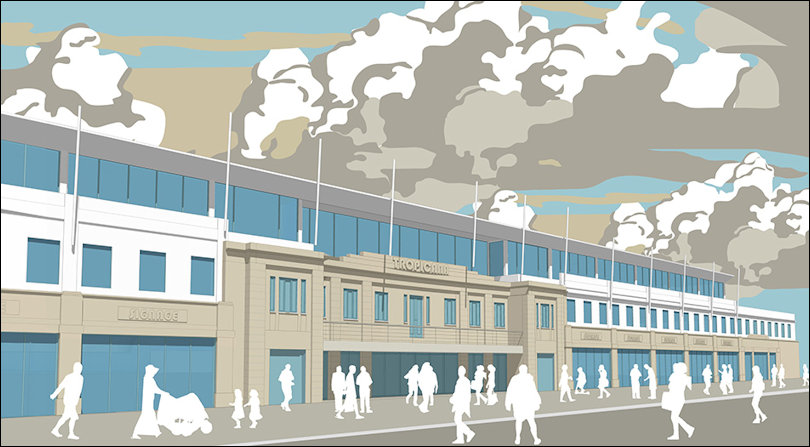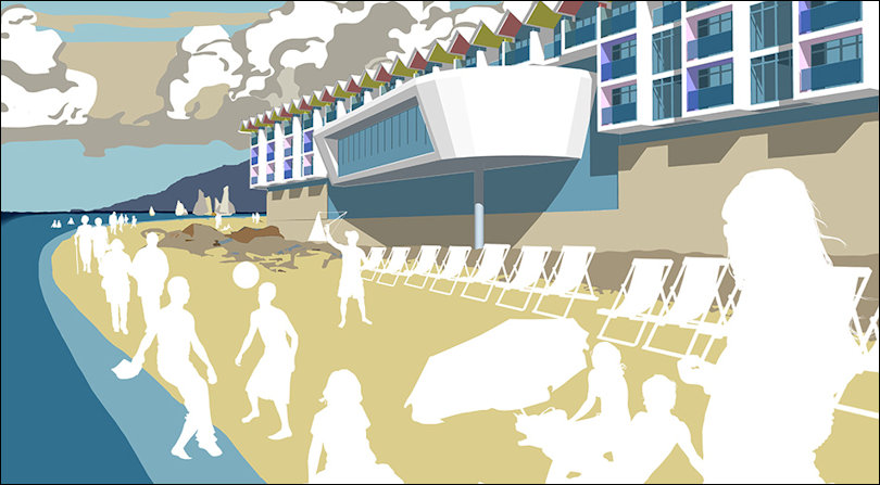 Concept Design - Tropicana rear view with cafe hub - designs and images © of Stride Treglown