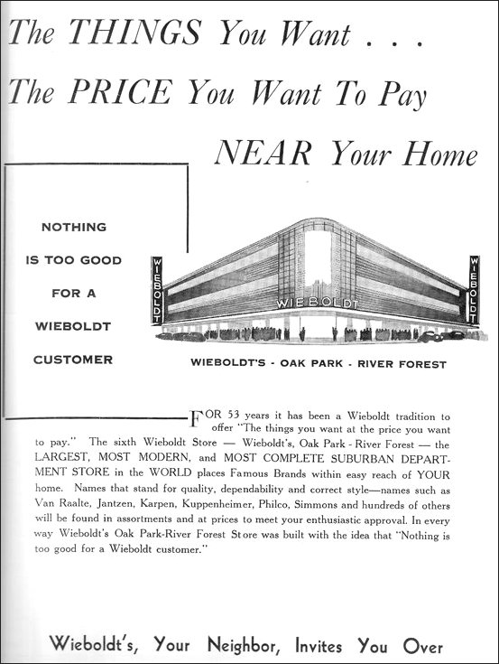An interesting fact : R.C. Wieboldt's Construction Company built all of the stores of the Wieboldt's department store chain. These stores were the targets of a Baggage, Parcel, Theatrical, and Armored Car Drivers' and Helpers' Union (AFL) strike in 1939; an early example of union busting through subcontracting.