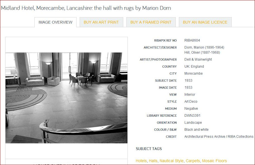 1933 Midland Hotel, Morecambe, Lancashire: the hall with rugs by Marion Dorn - image courtesy & © of Architectural Press Archive / RIBA Collections