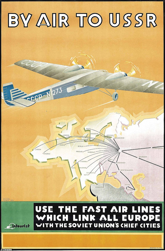 Truly appalling Intourist poster commissioned by Stalin - image courtesy of Christies Auctioneers via the Daily Mail