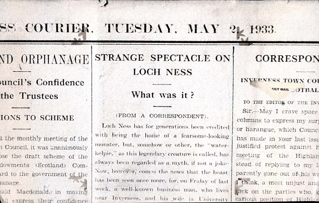 Strange spectacle: A report in the Inverness Courier from May 1933 noted there had been a 'strange spectacle' on the famous Loch and mentions the monster