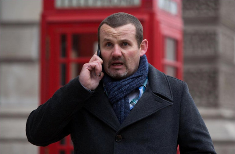Clearly worried Toadie finds himself using a mobile phone little realising his backdrop of Big Ben and a red telephone kiosk! - images courtesy of Decidertv