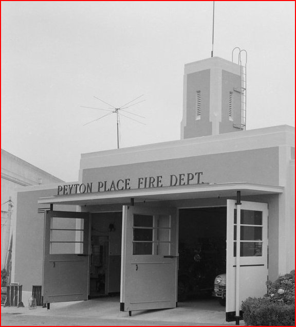 A full view of the Peyton Place Fire House - image sourced from and © of Getty/Walt Disney Image Provenance : Peyton Place Fire Department Appearing In 'Peyton Place' Unspecified: Peyton Place fire department location / set appearing in the ABC tv series 'Peyton Place'. (Photo by Walt Disney Television via Getty Images)