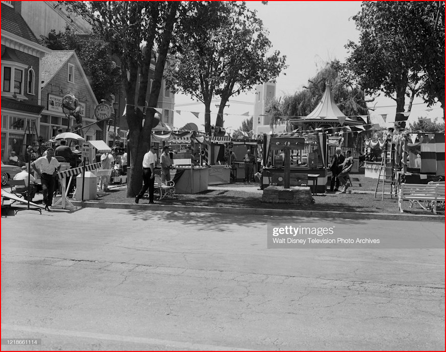 The Bandstand completed as we now turn our attention to the right side of the street and the Town Hall. Image sourced from and © of Getty/Walt Disney - Image Provenance : Construction Of Sets For 'Peyton Place' Unspecified - 1964: Construction of town sets, behind the scenes, making of the ABC tv series 'Peyton Place'. (Photo by Walt Disney Television via Getty Images)