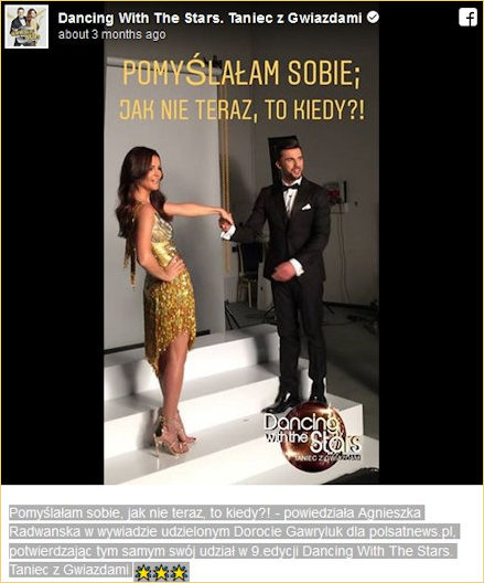 - It's official! Agnieszka Radwańska will participate on "Dancing with the Stars." The outstanding tennis player, who recently ended her sporting career, confirmed her participation in the television show whilst being interviewed for Polsat News. "I'm not doing this for the money or for fame. In the end, I absolutely can't complain about the show being promoted in this manner. Of course, they will probably push it in this way and such descriptions will feature in the headlines, but that's absolutely not the point as far as I am concerned! stated Radwańska. So what motivated her decision to take part in the Polsat reality show? And who will Isia be dancing with?