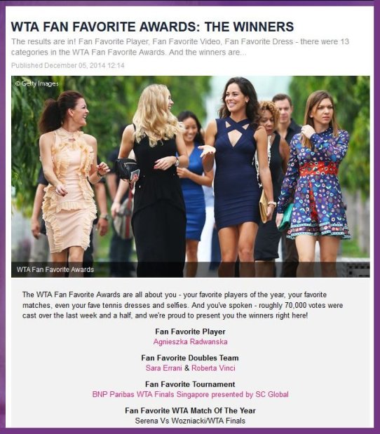 Favorite Doubles Team was won by Victoria Azarenka and Maria Kirilenko and Breakthrough Player went to Kvitova.